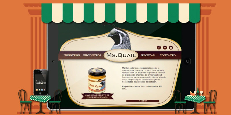 Entrevistamos a los productores de Ms. Quail S.R.L. una sociedad nueva, que nació para la industrialización novedosa en el país y en el exterior, de productos de excelente calidad por su sabor e ingredientes, y procedentes algunos de la carne y huevo de codorniz. En el caso de los derivados coturnicolas, implementando una línea de alimentos enriquecidos con vitaminas y sales minerales, aprovechando esa natural propiedad que poseen tanto el huevo como la carne de codorniz.